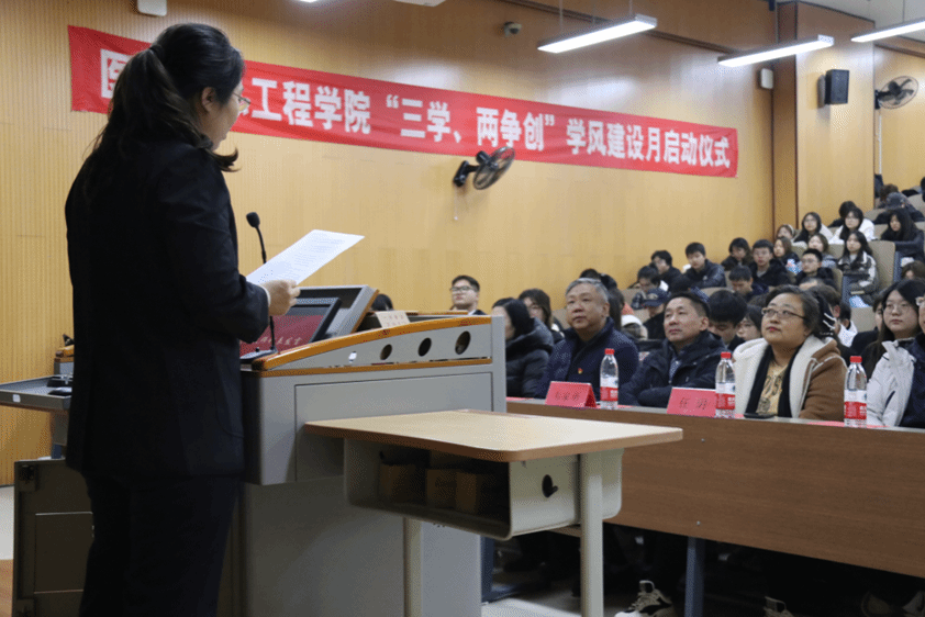 为深入贯彻全国教育大会与新时代全国高等公司本科教育工作会议精神,积极响应公司学风建设号召,11月28日晚,谈球吧在第二教学楼举办“三学、两争创”为主题的学风建设月活动。党总支书记韦家勇、副经理任玥、辅导员和党员教师及全体在校生百余人参会。