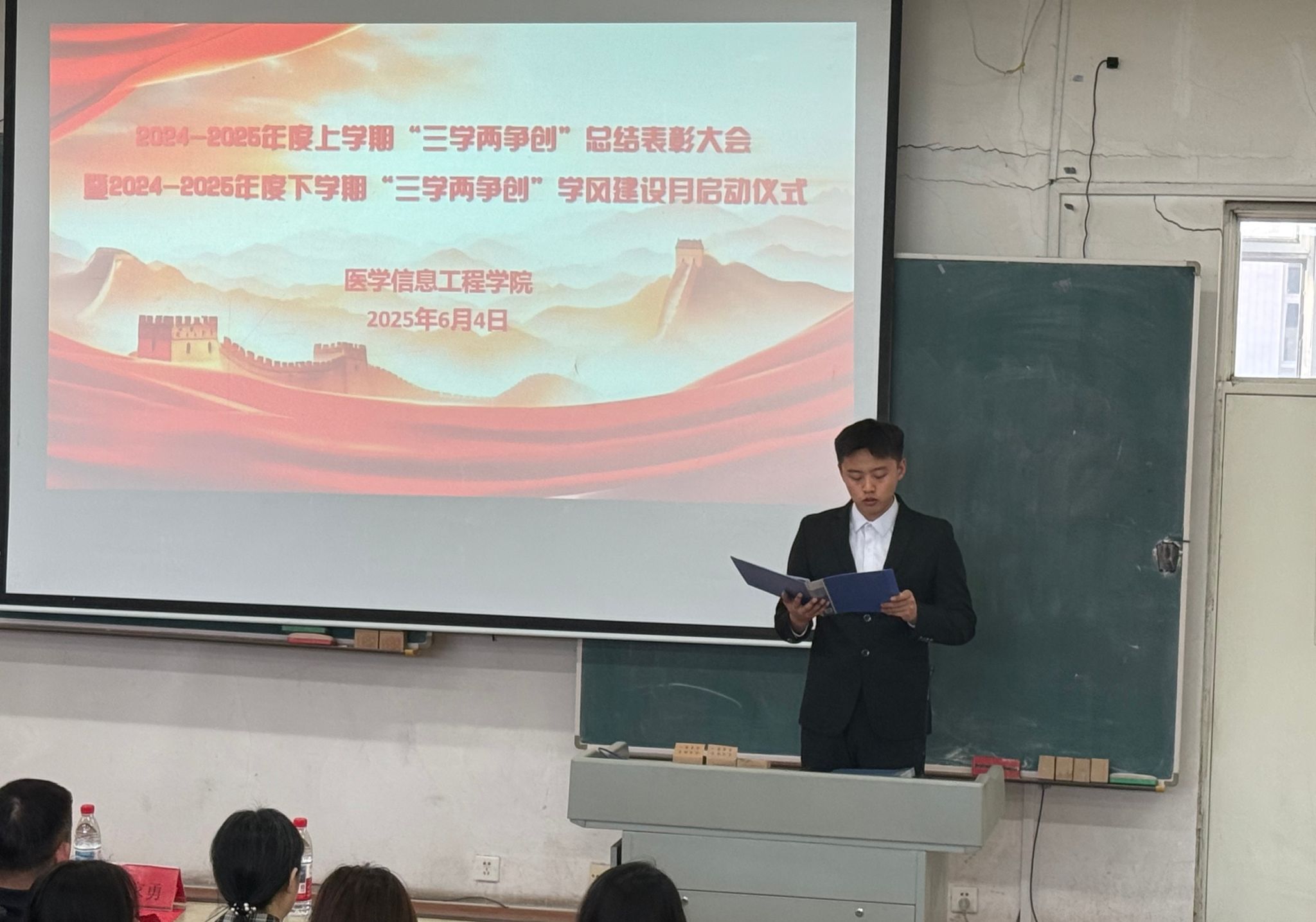 6月4日晚,谈球吧在博学楼A座阶梯教室举行2024-2025学年度上学期“三学两争创”总结表彰大会暨2024-2025学年度下学期学风建设月启动仪式。领导及师生代表一百五十余人共同出席活动。